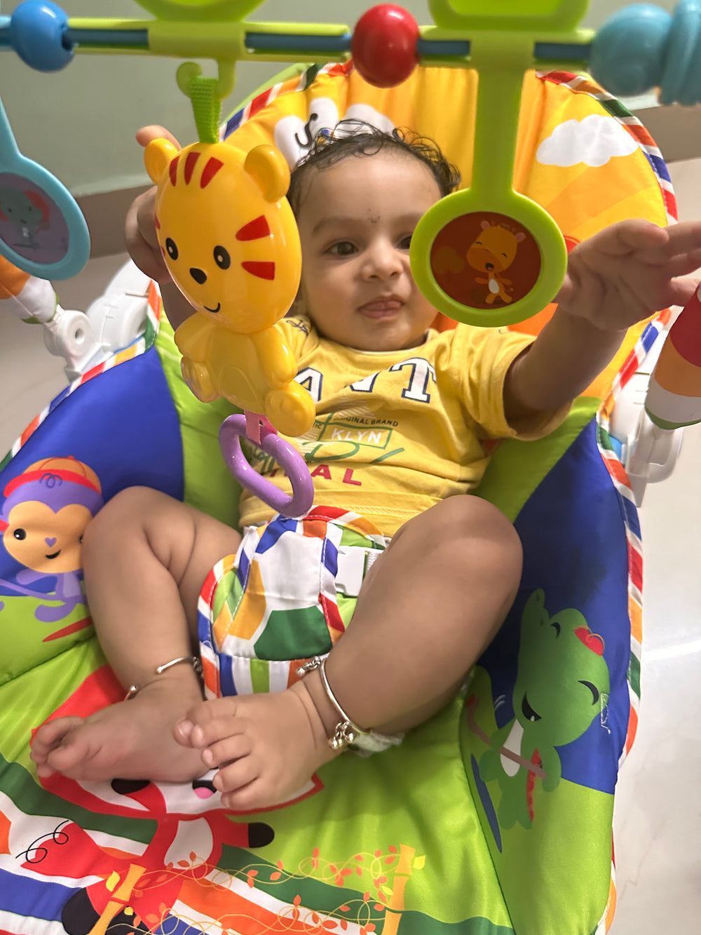 Give your little one a safe, cozy, and playful space while you manage your busy day. This colorful baby rocker comes with soft cushioning, engaging hanging toys, and a sturdy frame that ensures both comfort and fun.