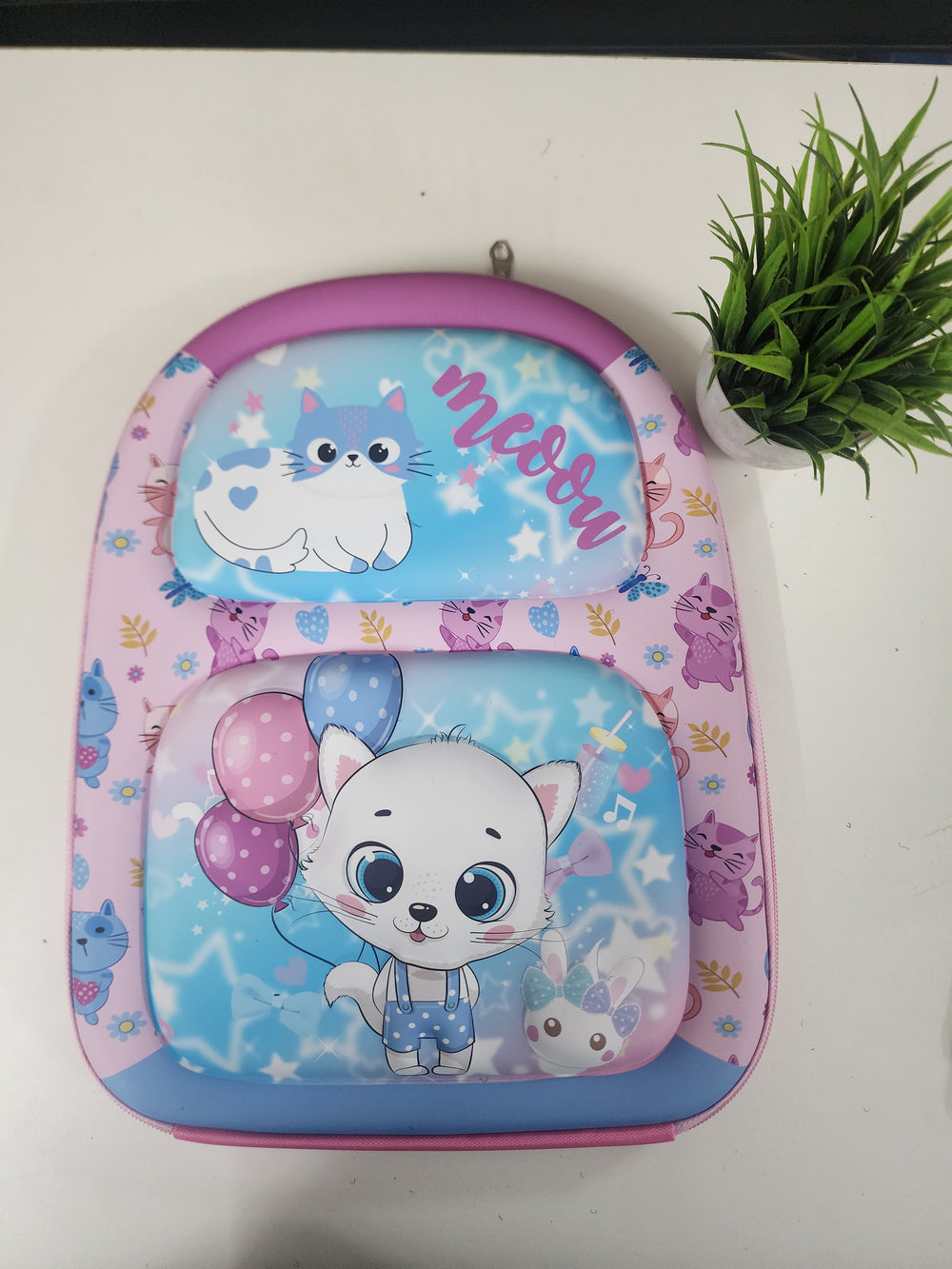 A cartoon school bag is typically a brightly colored backpack designed to appeal to younger students (preschool to early elementary age).