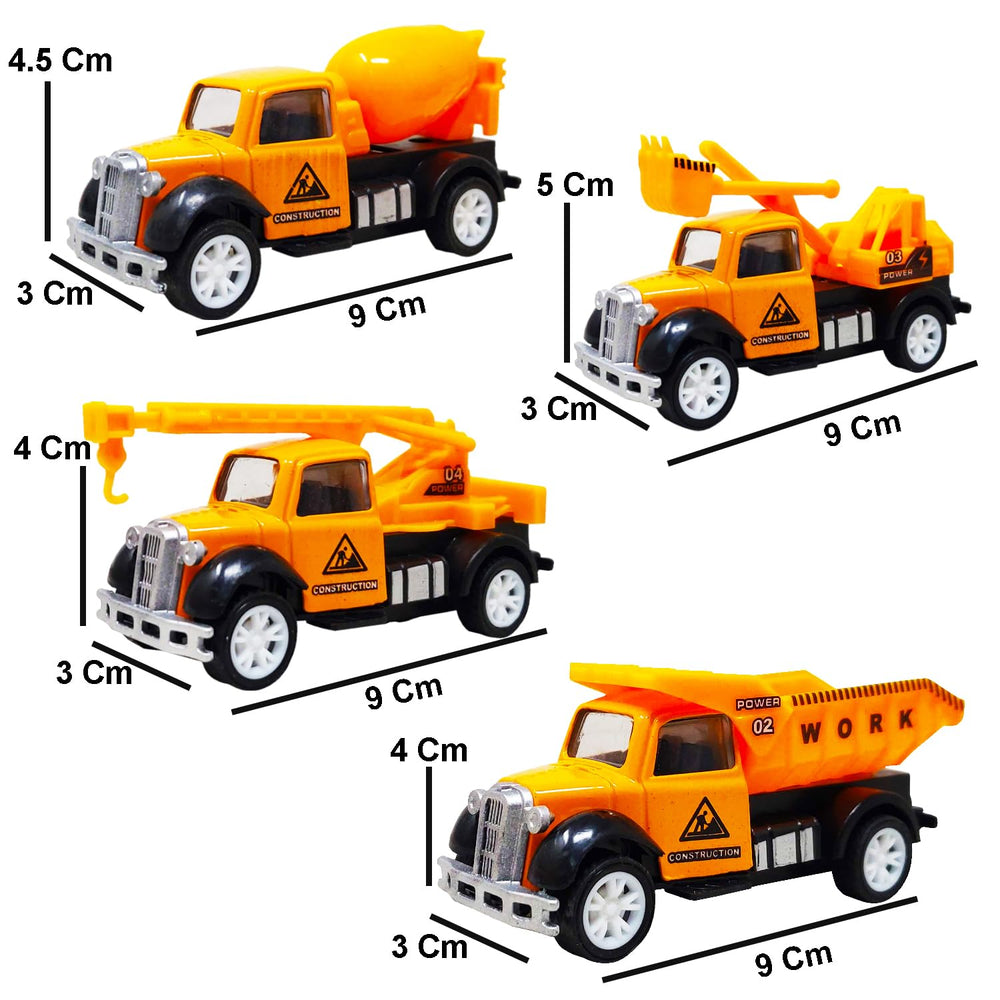 Expertly designed, this set of 4 Die Cast Small Construction Trucks is perfect for young builders. Made with precision and durability, these trucks guarantee endless hours of imaginative play. Each truck is uniquely designed with realistic details that provide an authentic construction site experience. Perfect for young minds to explore and learn!