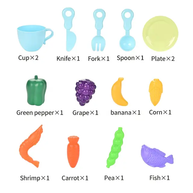 Role-playing by one or more players can teach children to learn various fruits and vegetables, improve the cognitive ability of kitchen utensils, exercise hand-eye coordination and organizing and storing ability.