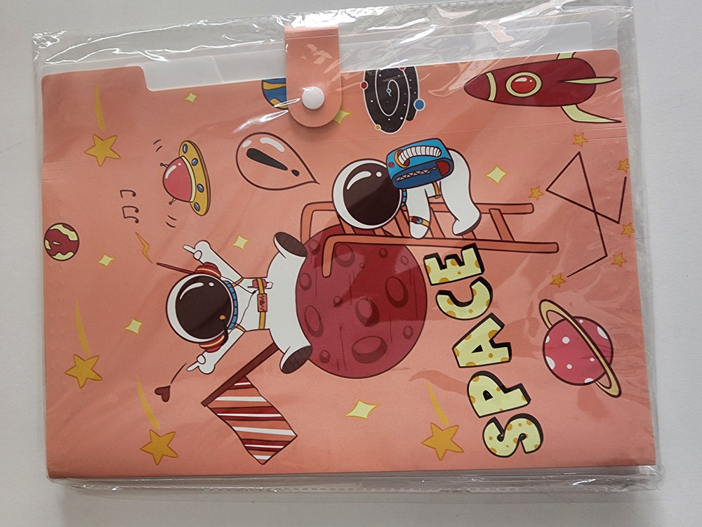 The item is a plastic file folder or document wallet, clearly shown sealed in its original, transparent packaging.