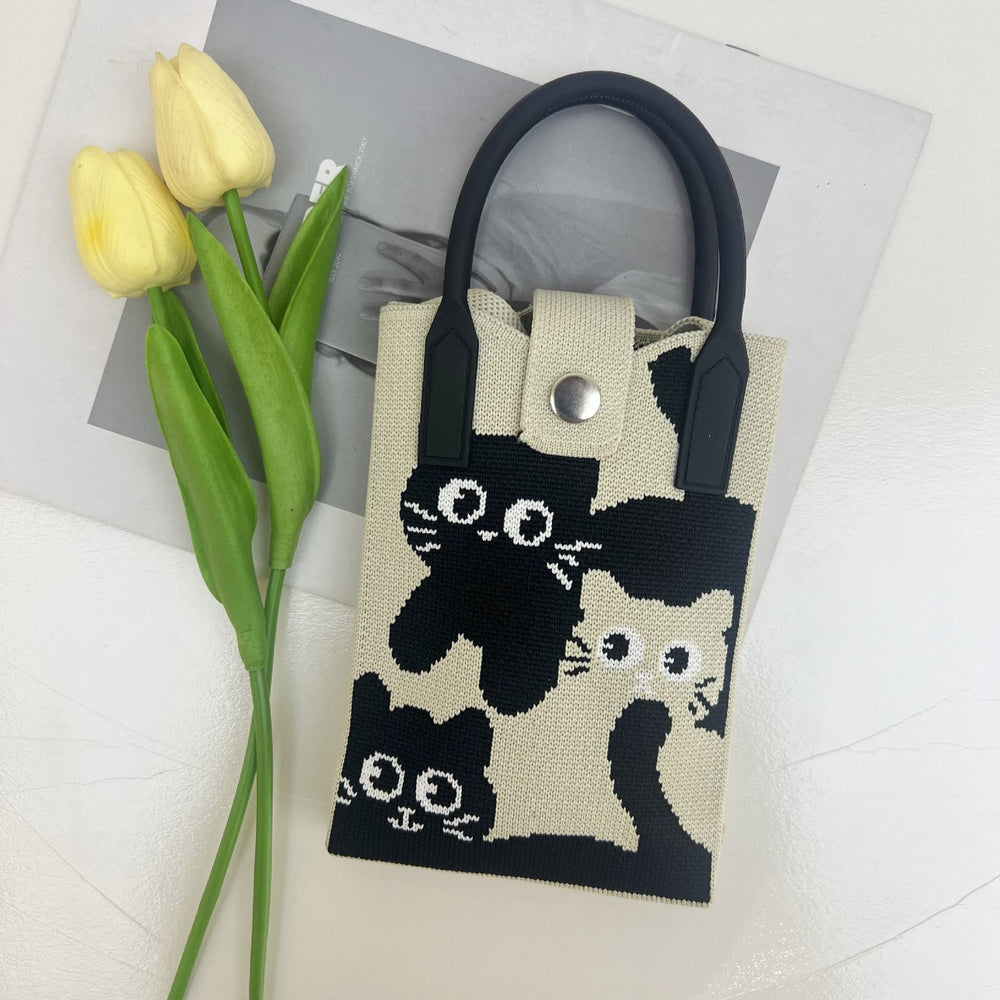 The product is a stylish and compact Animal Knit Crossbody Sling Bag, featuring a cute animal graphic design that adds a playful touch to any casual outfit.