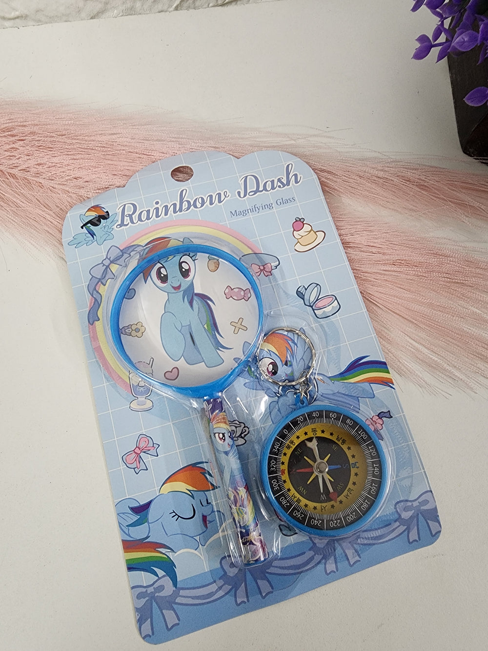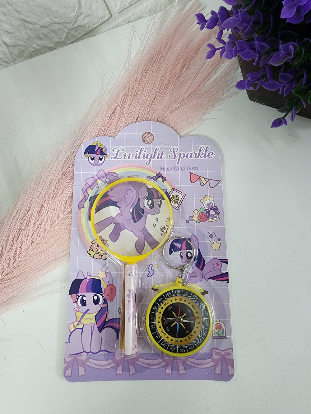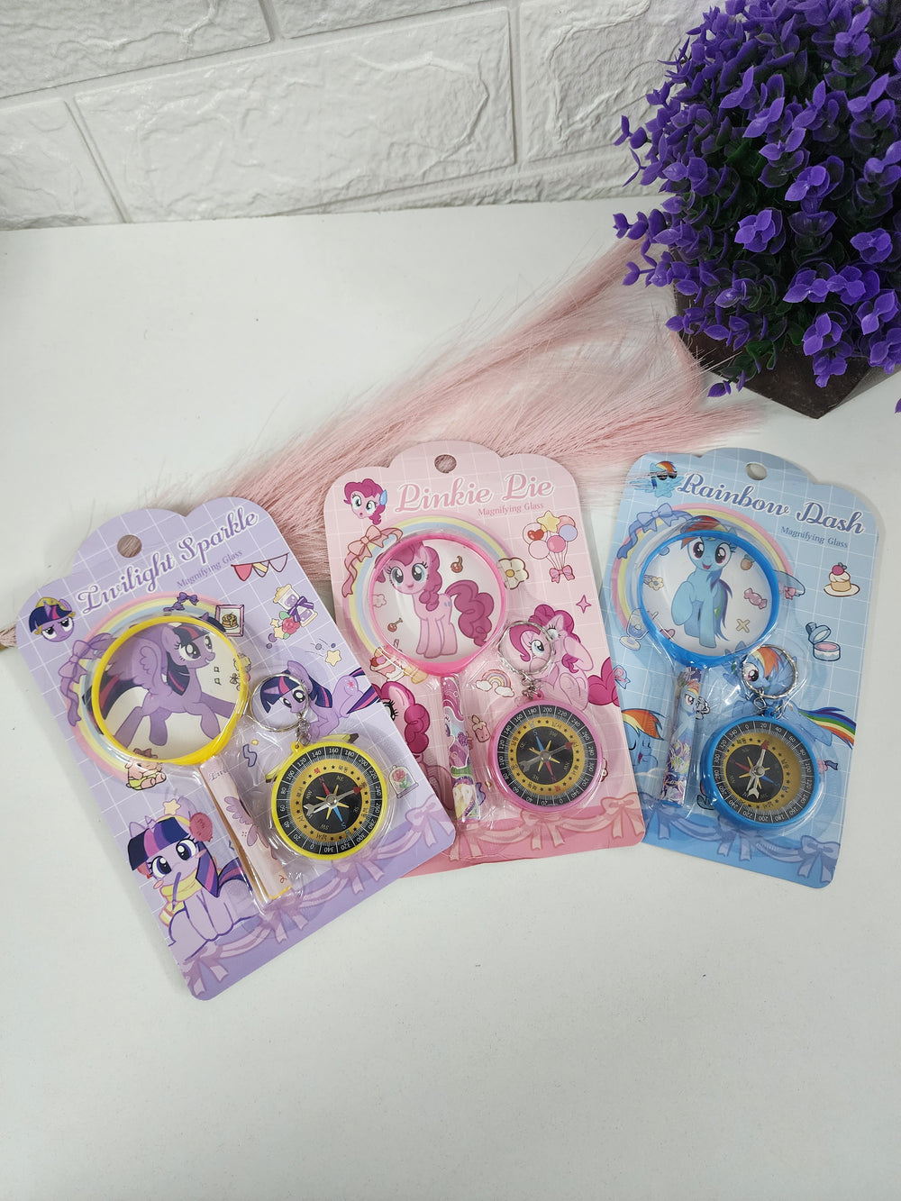 A colourful, kid-friendly adventure tool inspired by My Little Pony, this magnifying glass compass combines fun and function in one playful design. Featuring bright pony artwork and an easy-to-read compass, it helps young explorers learn basic navigation while examining leaves, maps, and tiny treasures up close. Lightweight and durable, itâs perfect for outdoor play, nature walks, or imaginative quests in Equestriaâmaking learning feel like magic. đđ§