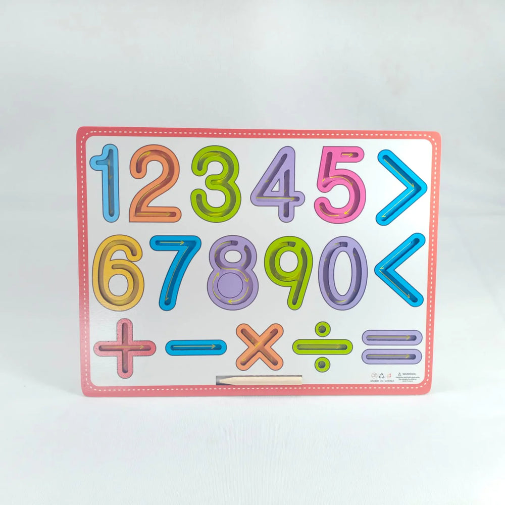 Enhance your child's math skills with our Wooden Numbers Tracing Board! Perfect for visual and kinesthetic learners, this board teaches numbers and counting through hands-on tracing. Made with high-quality wood for durability and safety. Give your child a head start in math with this educational tool!