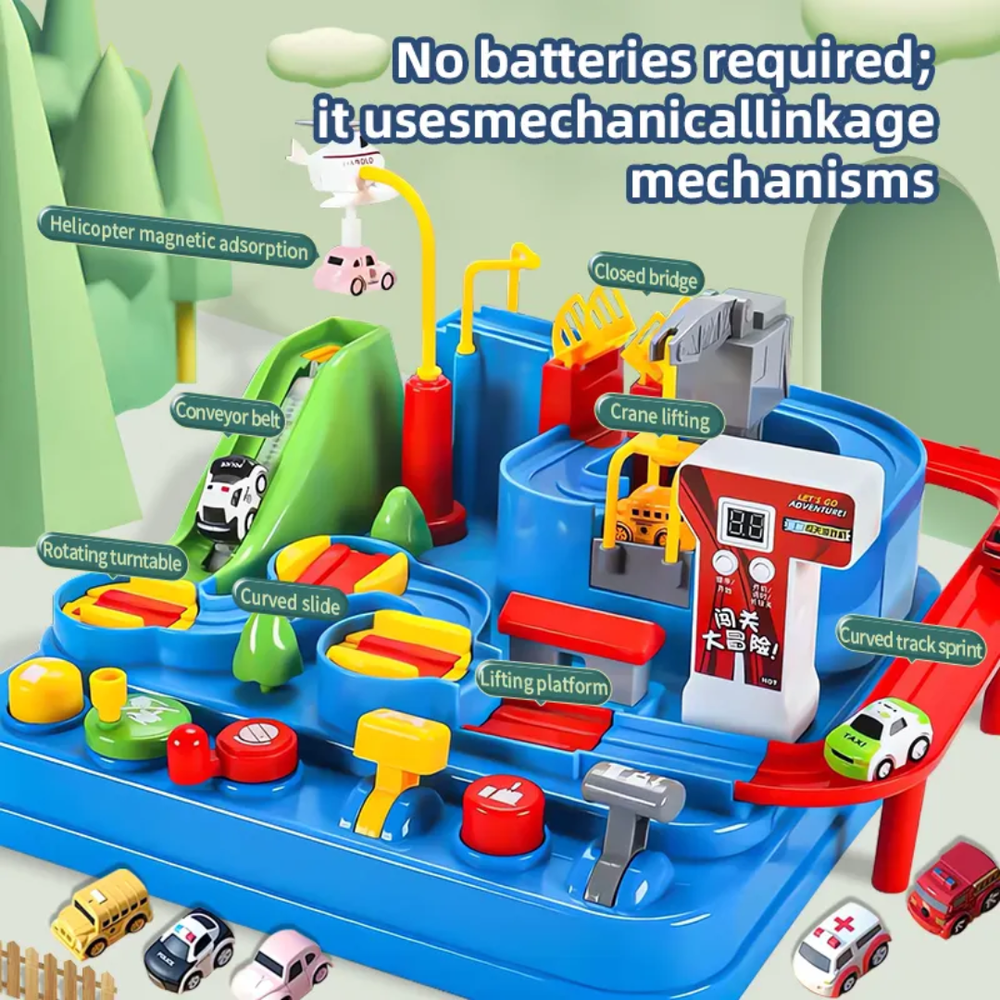 2-IN-1 cars race track cooperative game where children can interact and share fun with their parents, Trains kids' hand-eye coordination and hands-on, encouraging children's imagination and improving teamwork to solve problems.