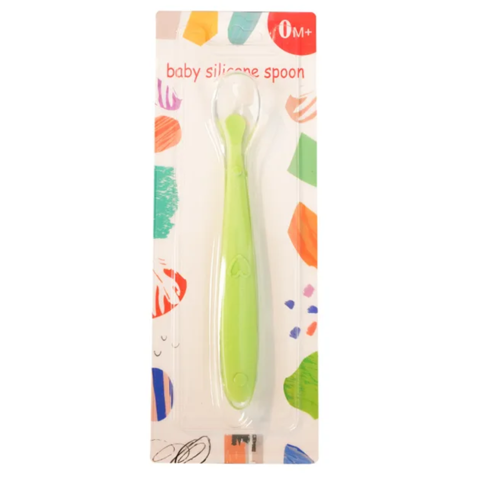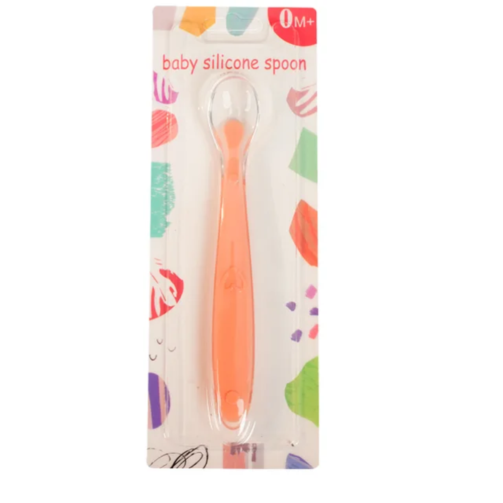 Design & Material: The spoons have a soft, pliable, often translucent or semi-transparent silicone tip (bowl) and a colored handle (orange and green are shown).