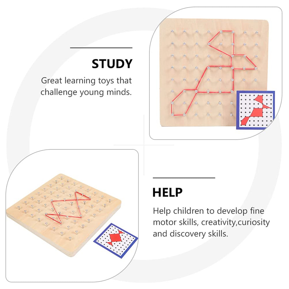 Experience the endless possibilities of geometric exploration with our Wooden Geoboard Toy. Made from premium quality wood, this toy is a perfect tool to develop fine motor skills and enhance spatial awareness in children. With its durable design and vibrant colors, it provides hours of engaging and educational play for young minds.