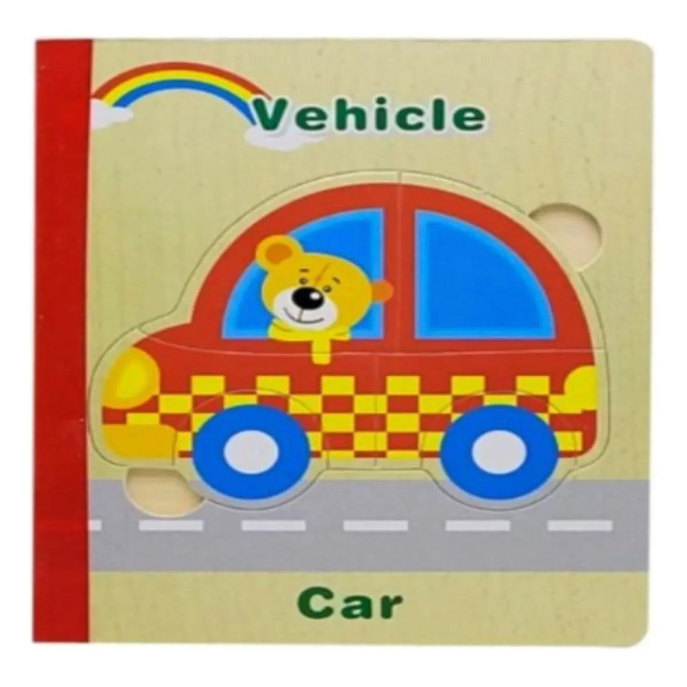 6 different types of vehicle puzzles for toddlers with bright colours and illustrations